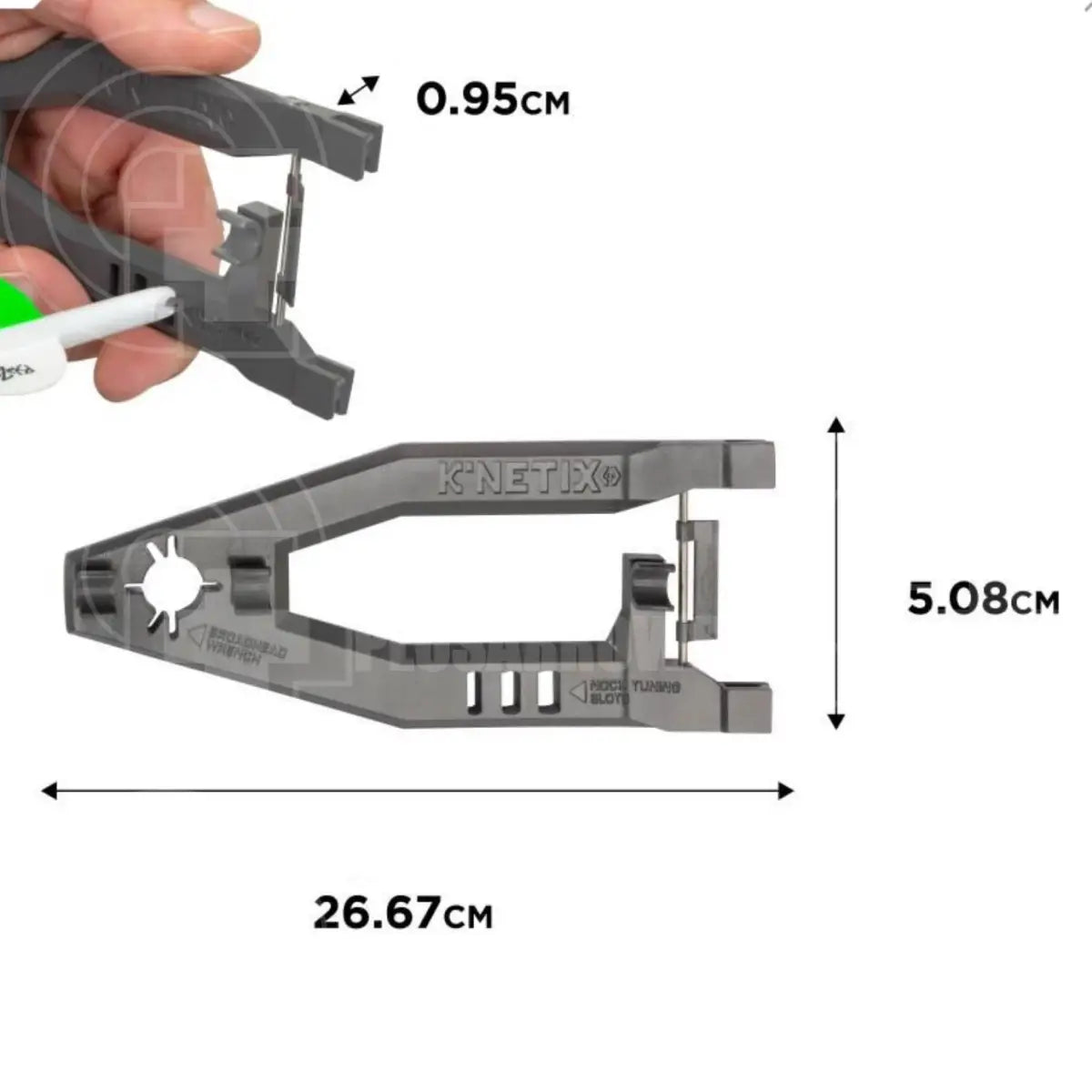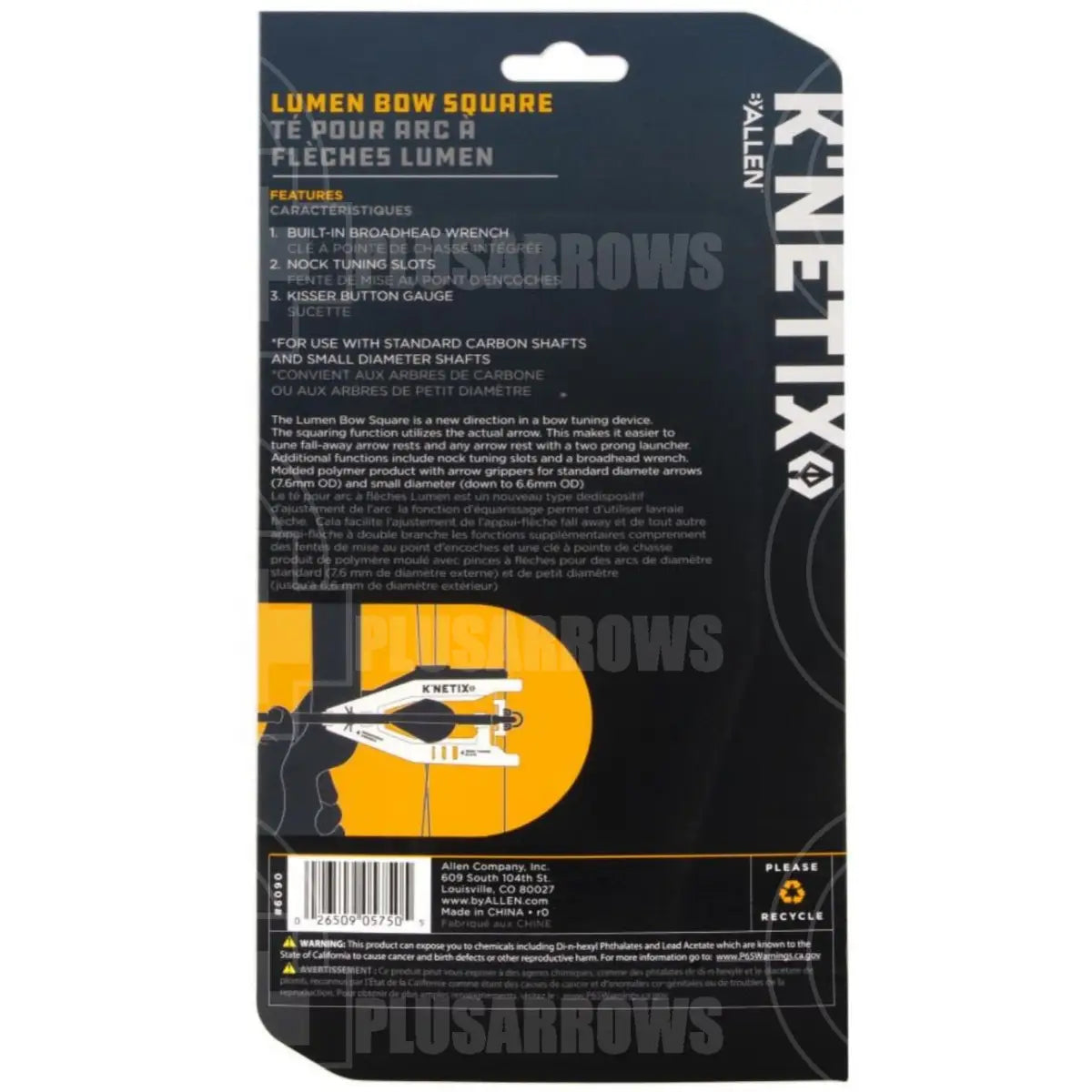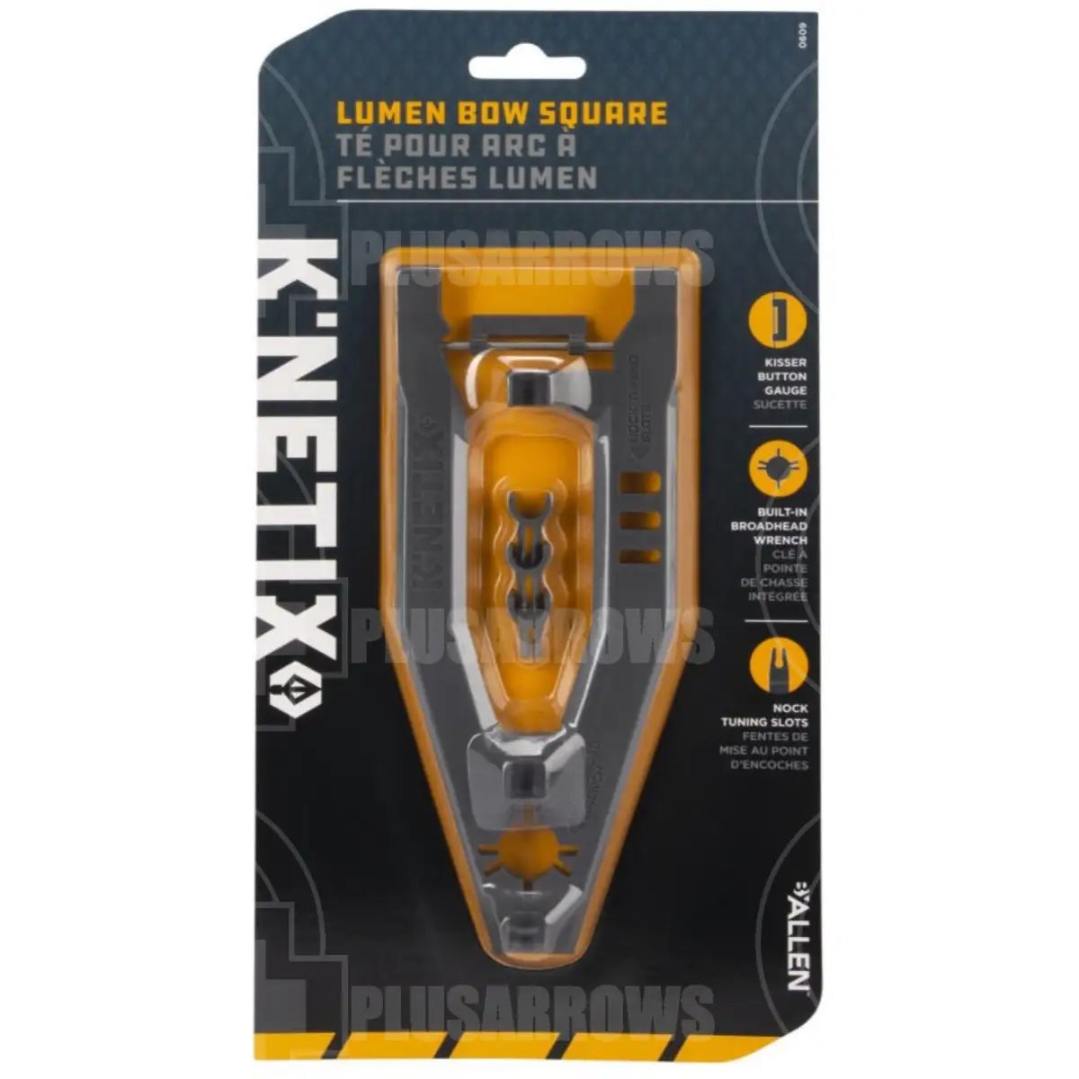 The K’Netix Lumen Bow Square Multitool features a new direction in bow tuning devices. Molded polymer has arrow grips to use with standard carbon and small diameter arrow shafts. Tune your fall-away arrow rests, and any arrow rest with 2-pronged launchers, while the squaring function utilizes the actual arrow. This 3-in-1 multitool includes a broadhead wrench, 3 nock tuning slots, and a kisser button gauge. Meet your expectations and never be without K’Netix™ in your archery pack.