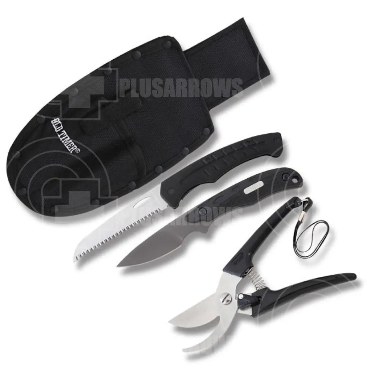 The Old Timer Hunt Prep Kit by Schrade Cutlery features a Lil' Finger fixed blade, folding saw and pruner. The nylon construction sheath keeps all these tools together and has you ready for the woods