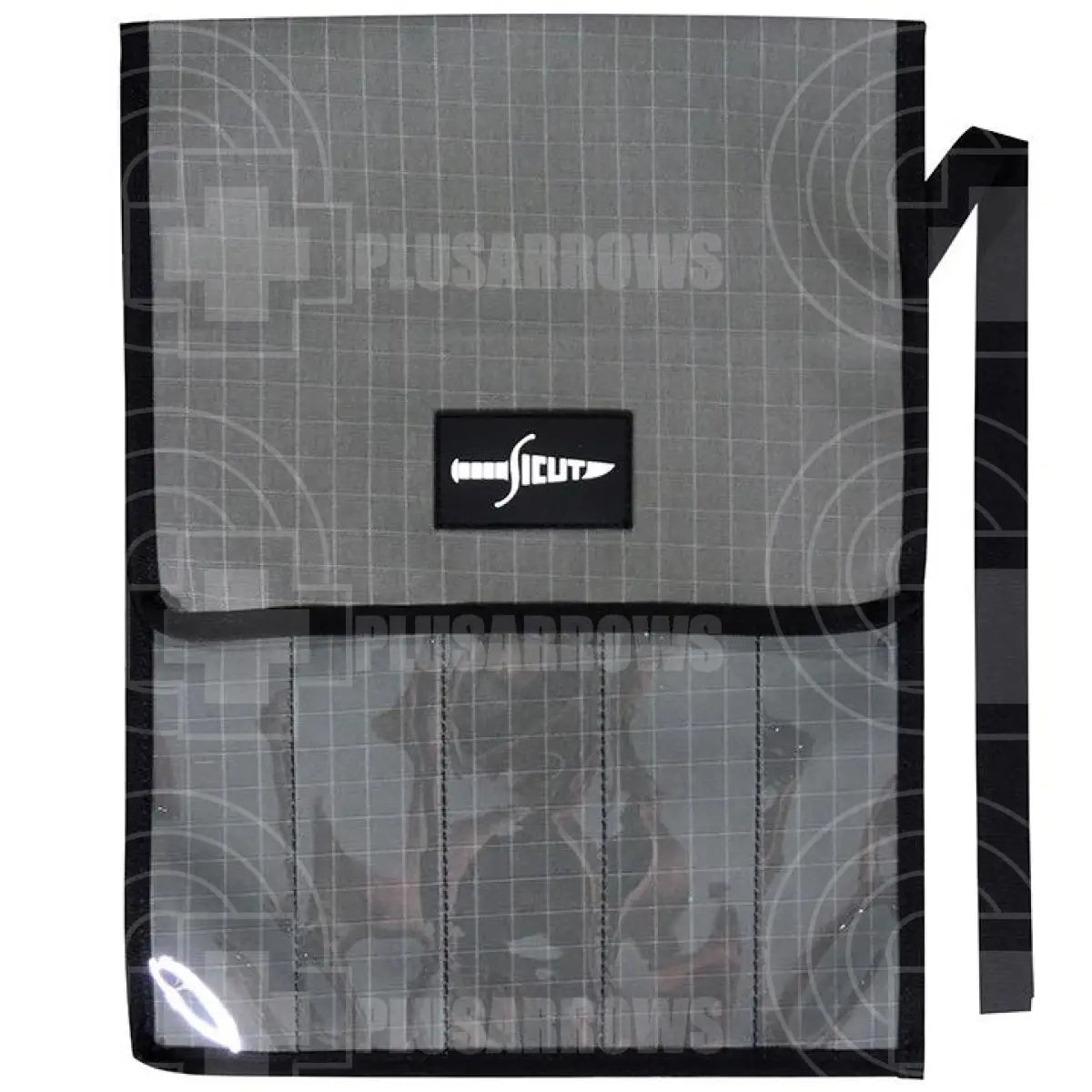 SICUT canvas wraps are made from 14oz heavy duty rip stop canvas featuring a clear front for easy identification of your blades with a 50mm hook loop touch tape closure for easy access to your beloved knives. These knife rolls are designed for maximum protection while still being very easy to use and durable, this wrap will last a lifetime.