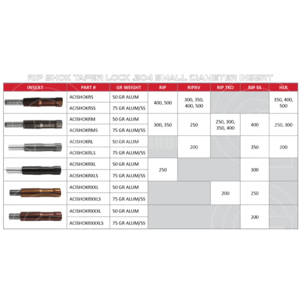 Victory RIP Shok Taper Lock Aluminium/Stainless Insert (75 Grain)