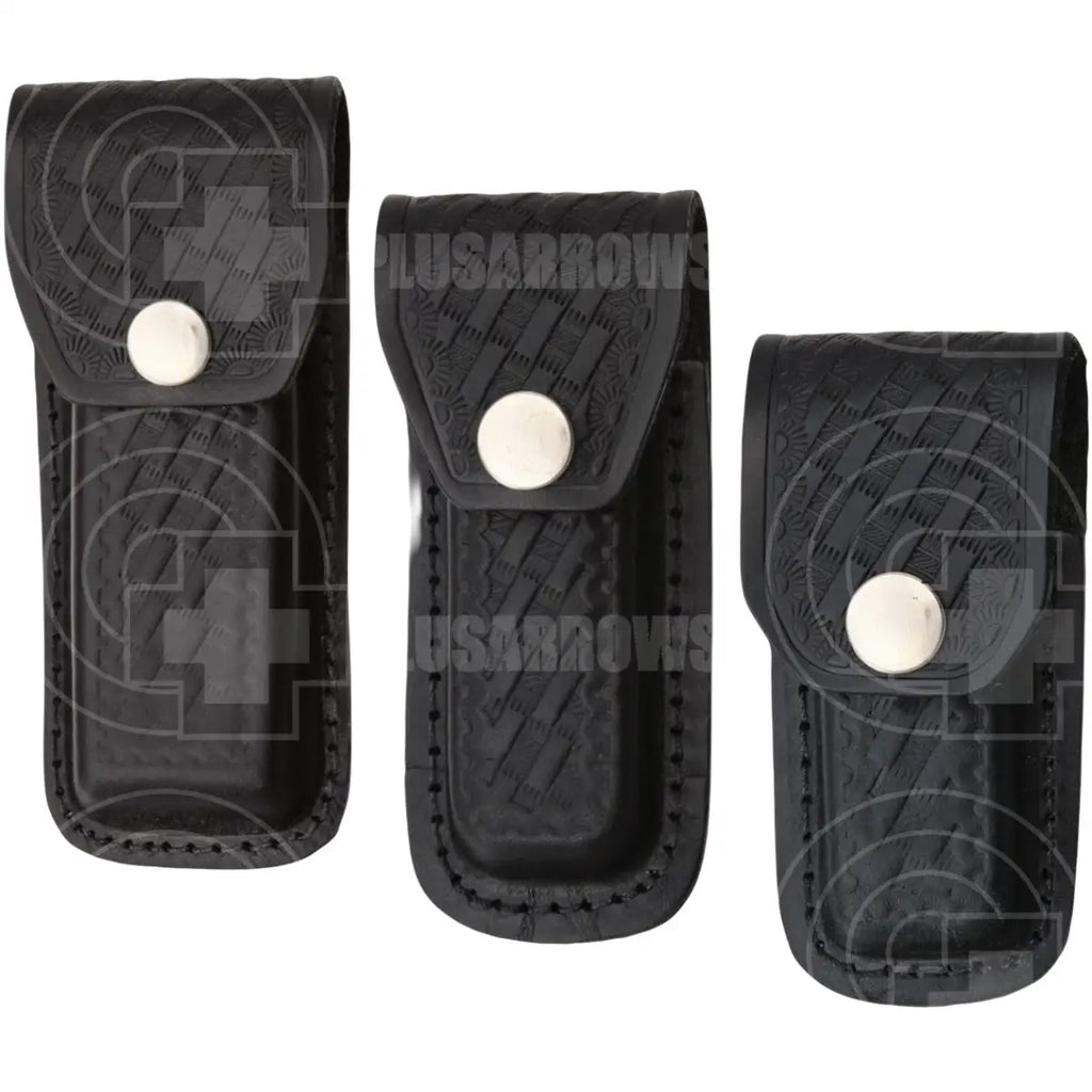 Black Embosed Leather Folding Knife Sheath