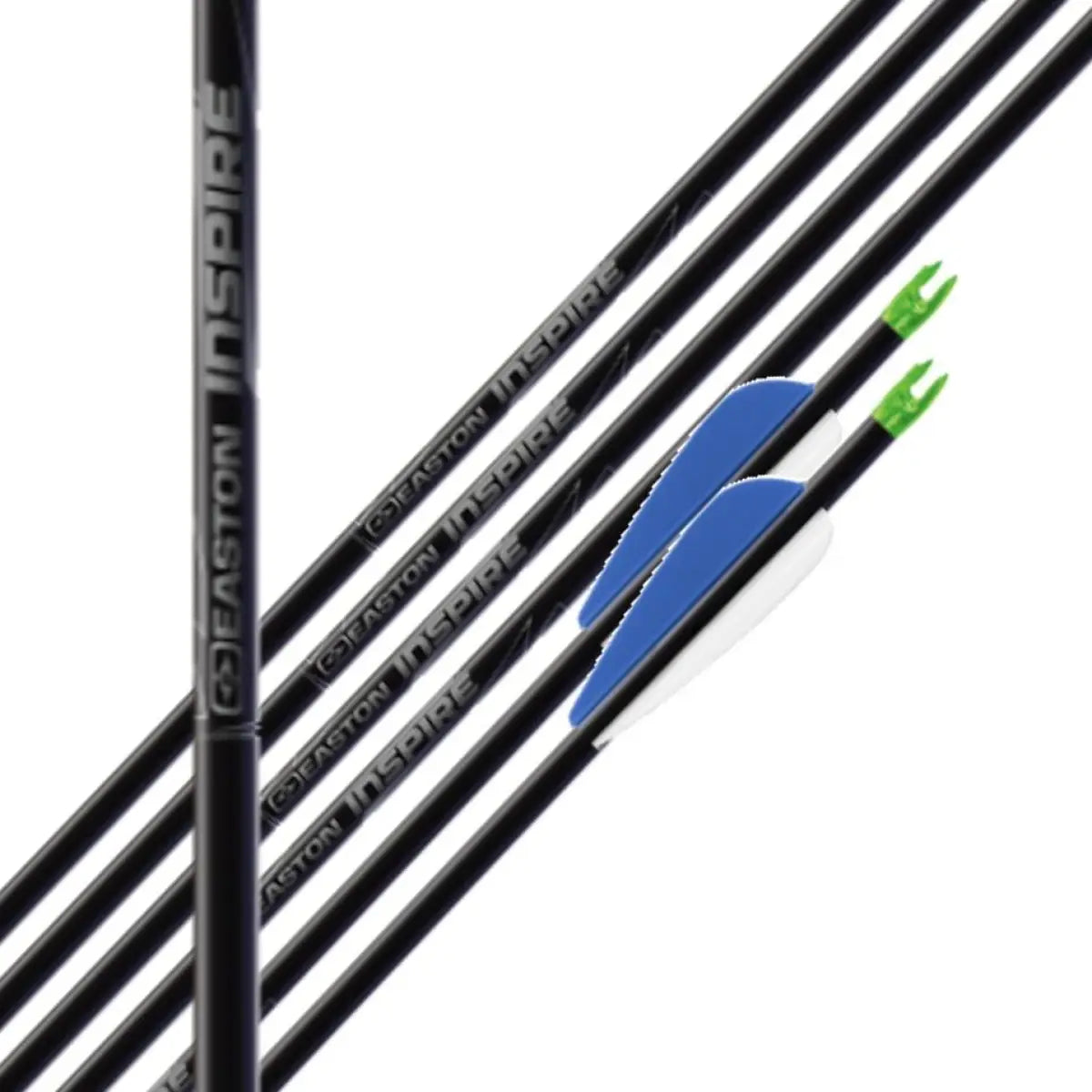 Easton Inspire are a small-diameter, micro-smooth carbon finish arrow shaft that are produced to the tightest tolerances at an affordable price. They come in a wide range of spines tailored for the beginning archer of any age and are accurate and durable. Arrows are pre fletched and will arrive with points installed ready to use.