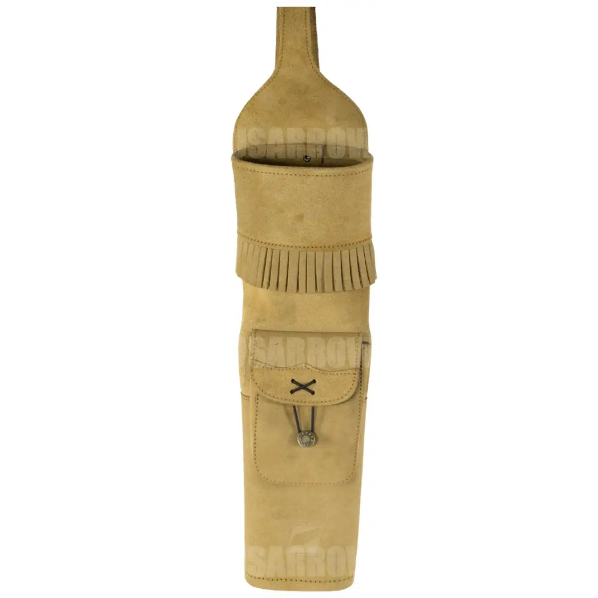 White Feather Water Back quiver is made from split grain leather and metal hardware.