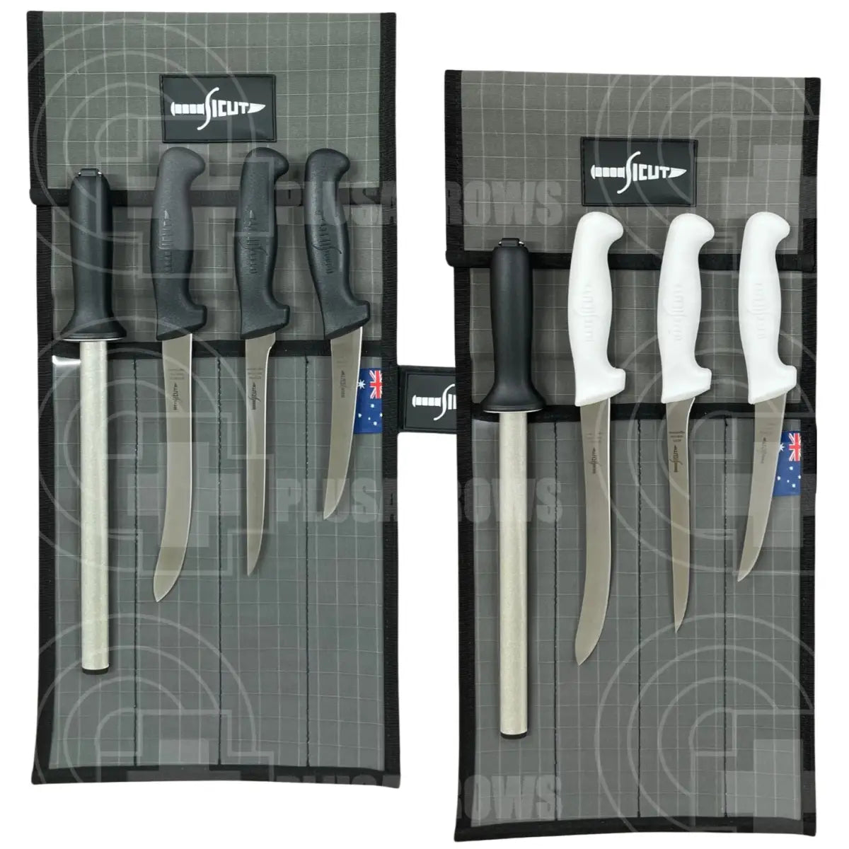 - 1 x Sicut 4pc Canvas Knife Wrap with Clear PVC Front