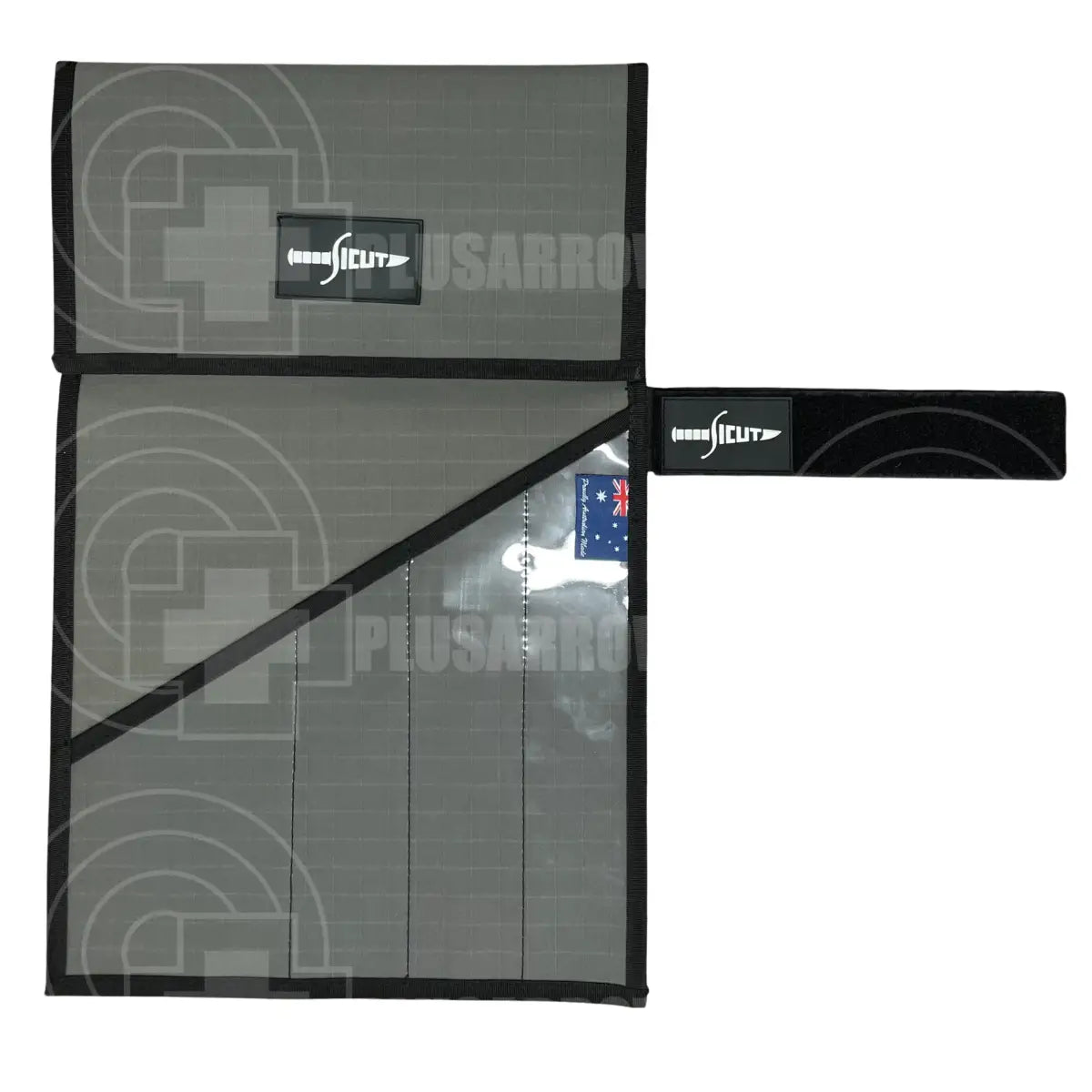 SICUT Australian Made canvas wraps are produced from 14oz heavy duty rip stop canvas. Featuring a clear front for easy identification of your blades with a 50mm hook loop touch tape closure for easy access to your beloved knives. These knife rolls are designed for maximum protection while still being very easy to use and durable, this wrap will last a lifetime.
