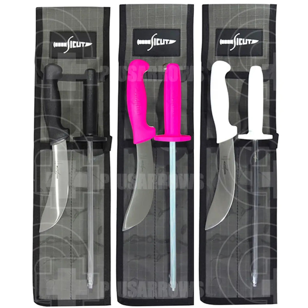SICUT’s skinning knives are all made with a stain-free, high-carbon steel blade that achieves a 55 Rockwell Hardness, with an individually ground and honed edge at a 25 degree angle, easy to sharpen, which makes them perfectly suited to any recreational or commercial use.