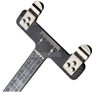 The Hoyt Bow Square is a precision tool constructed from anodized aluminium, designed for archers seeking exact tuning. Its T-Square style and laser-etched reference marks ensure accurate measurement of brace height, tiller, nock point location, and peep height. Securely attaching to the bowstring with metal clips, it offers stability during adjustments. The integrated Hoyt recurve brace height chart provides immediate, reliable reference, streamlining the tuning process for optimal bow performance. This essential accessory supports expert-level accuracy and consistency in bow setup.